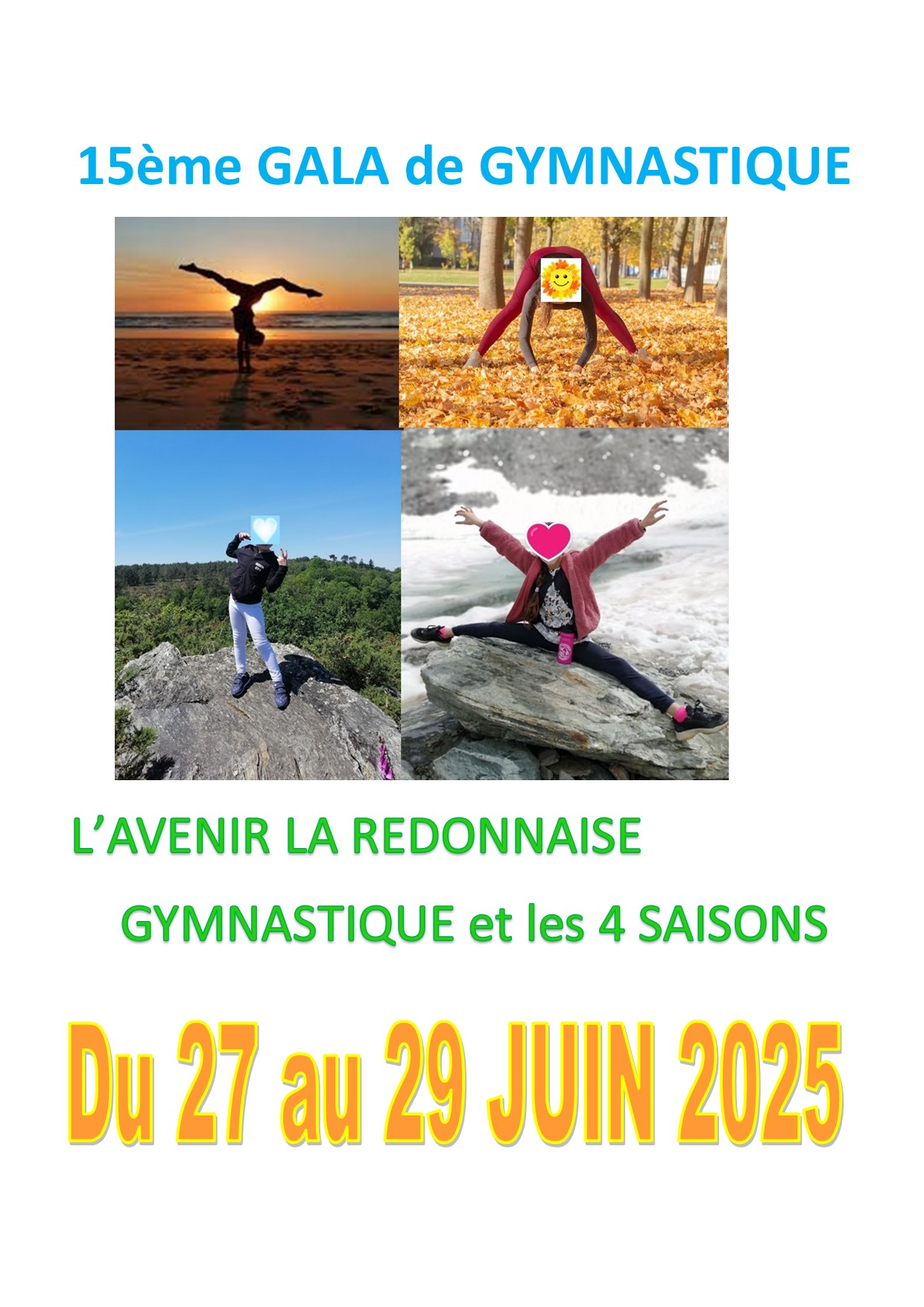 Notre 15ème Gala de Gymnastique (et 4ème sous nos nouvelles couleurs!) aura lieu les vendredi 27 à 20h, samedi 28 à 14h et 20h et dimanche 29 juin 2025 à 14h au complexe Joseph Ricordel à Redon