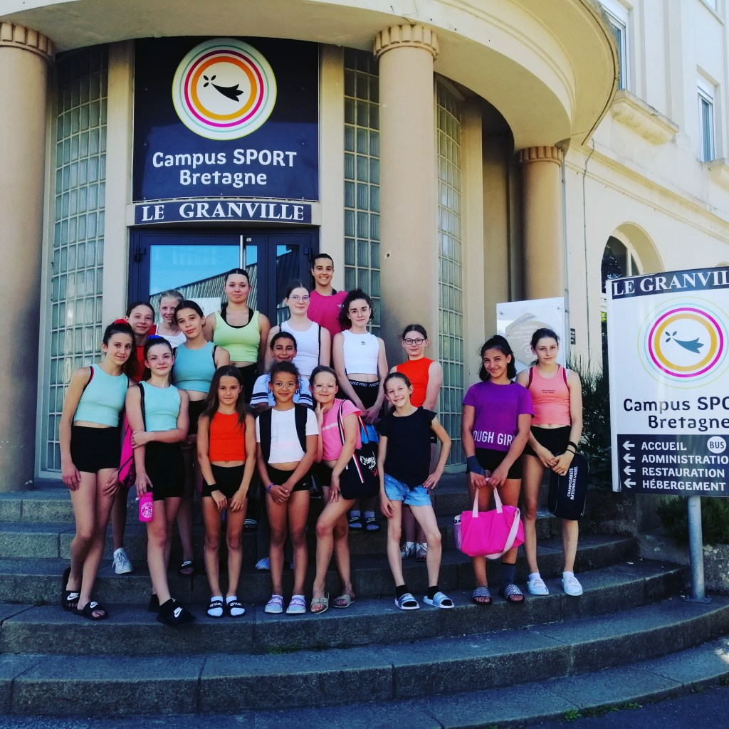 Bonsoir à tous ! Et voilà une nouvelle journée passée à Dinard, l’avant dernière de ce stage toujours si plaisant ! Le réveil s’est encore bien passé pour nos gymnastes, les formes étaient toujours au rendez-vous malgré quelques courbatures parfois… Mais logique pour certaines à la charge de travail moins intense parfois… La matinée était consacrée à une bonne dose de GYM, des barres et de la poutre pour toutes ! Chacun à son niveau ,nous avons pu aller vers du travail d’équilibre en barres, de passe fil, ou de tourniquet aussi en toute sécurité ! A la poutre, de l’acrobatie avant au menu et quelques entrées et sorties nouvelles afin d’évoluer un peu plus sur des éléments nouveaux ! Un bon temps de travail donc et un repas bien mérité… Un HOT DOG… Surprenant, pour un campus sportif, mais bon, c’est à peu près passé dans les estomacs… L’après midi, nous sommes vite partis vers la grande plage de l’Ecluse pour l’après midi CHATEAU DE SABLES organisé par la Ville de Dinard. 1h30 d’effort pour 3 équipes du club et une belle fierté de nos 3 châteaux du jour, que vous retrouverez en photos dans notre drive plus bas ! Bon, cela nous a demandé des efforts tout de même, avec notre petit équipement, comparé aux autres équipes parfois en mode COMPETITION ! Nous n’avons au final rien gagné, mais bon, elles auront gagné la fierté de nos coachs ! Tout cela méritait bien un bon goûter, avec 3h de temps autour de nos châteaux car il y avait du temps de préparation, alors nous sommes partis vers les glaces et chichis, en attendant demain une rapide balade pour des souvenirs pour vous et nos proches ! Le soir, la douche s’imposait et la fatigue apparaissait … (enfin pour certains !) Un bon dîner et hop, reparti pour une veillée ! Pour la 1ère fois depuis longtemps, notre dernière soirée n’était pas sous le signe de notre petit apéro de Fin de STAGE ! Ce goûter tardif et ce repas ensuite ont écourté notre faim ! Ce n’est que partie remise, demain midi ! Alors nous nous sommes lancés dans une veillée JUST DANCE dont vous verrez quelques photos et superbes vidéos surtout ! Maintenant, tout le monde est bien couché depuis 22h30, et demain, rangement des chambres, préparation des bagages de retour, et beaucoup de GYM encore avec la forme que l’on a gardé en toute conscience ! On a hâte de vous retrouver tout de même mais si l’on peut encore profiter de notre journée de jeudi, ce sera top !!! Bisous et bon visionnage de nos photos du mercredi ci dessous !